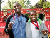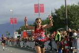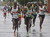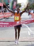 Running in a near constant drizzle, Kabiso’s time was three minutes off his record run of last year, but still good enough to earn $3,000. Poland’s Malgorzata Sobanska won the women’s division in 2:37.06, the fastest time in race history. She earned $3,000 for the win and $2,500 for becoming the first woman to go under 2:39.00.