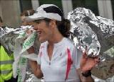 The winner of the women’s marathon, Nathalie Goyer, from St. Bruno, Quebec, was in much better shape after her 2 hours and 55 minutes of running, a new course record.