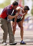 Note from Canadian Marathoning: Chris Brake had won his sixth straight Fredericton Marathon on May 14 of 2006 but was disqualified after it was discovereded that he had received assistance in the last 200 meters of the event. Some spectators had rushed in to assist Chris when it looked like he was in distress from the heat.