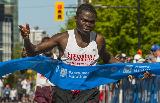 The 22-year-old Ethiopian now running out of Peekskill, N.Y., was a last-second arrival at the start line, but still won his second consecutive Vancouver Marathon. After running elbow-to-elbow with Joseph Kahugu for 32 kilometres, he broke away on the turnback at Jericho Beach and then held off the Kenyan down the final stretch to win by a slim five-second margin in 2:18.33.